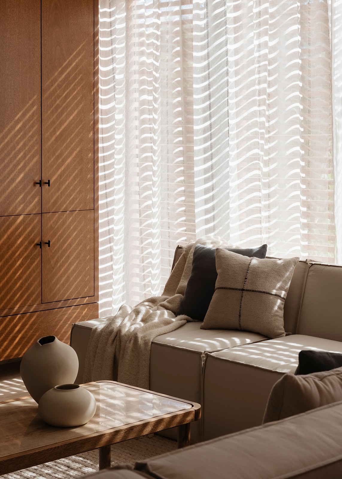 The architecture, defined by clean and perfectly square volumes, inspired a simple interior language with no curves — allowing materials to take the lead.
